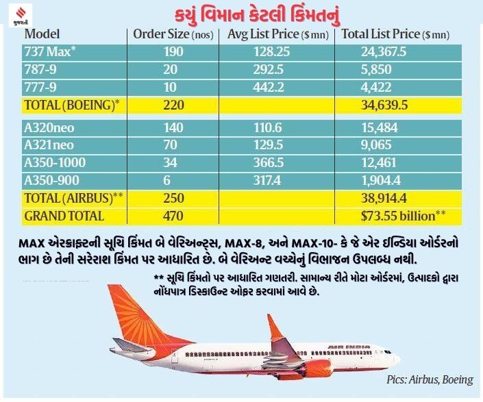 એર ઈન્ડિયાના ઓર્ડરની વિગતો