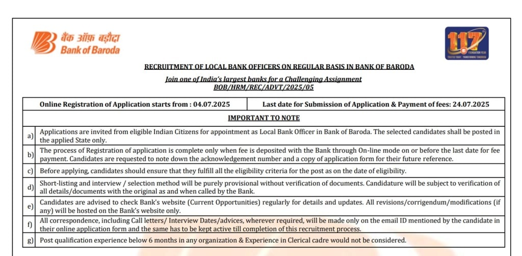 BOB LBO ખાલી જગ્યા 2025 ફોર્મ: પોસ્ટની વિગતો