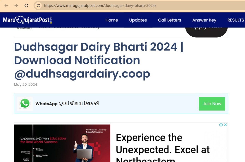 વાયરલ સમાચાર અંગે મળતી માહિતી પ્રમાણે નોકરી અંગે જાણકારી આપતી વેબસાઈટ GujaratAsmita અને MaruGujaratમાં દૂધસાગર ડેરી ભરતી અંગે સમાચાર આપવામાં આવ્યા હતા. ઉપરોક્ત બંને વેબસાઈટમાં પ્રકાશિત સમાચાર પ્રમાણે દૂધસાગર ડેરી દ્વારા પ્લાન્ટ ઓપરેટર અને કેમિસ્ટ/ માઇક્રોબાયોલોજીસ્ટની પોસ્ટ માટેની જાહેરાત છે.