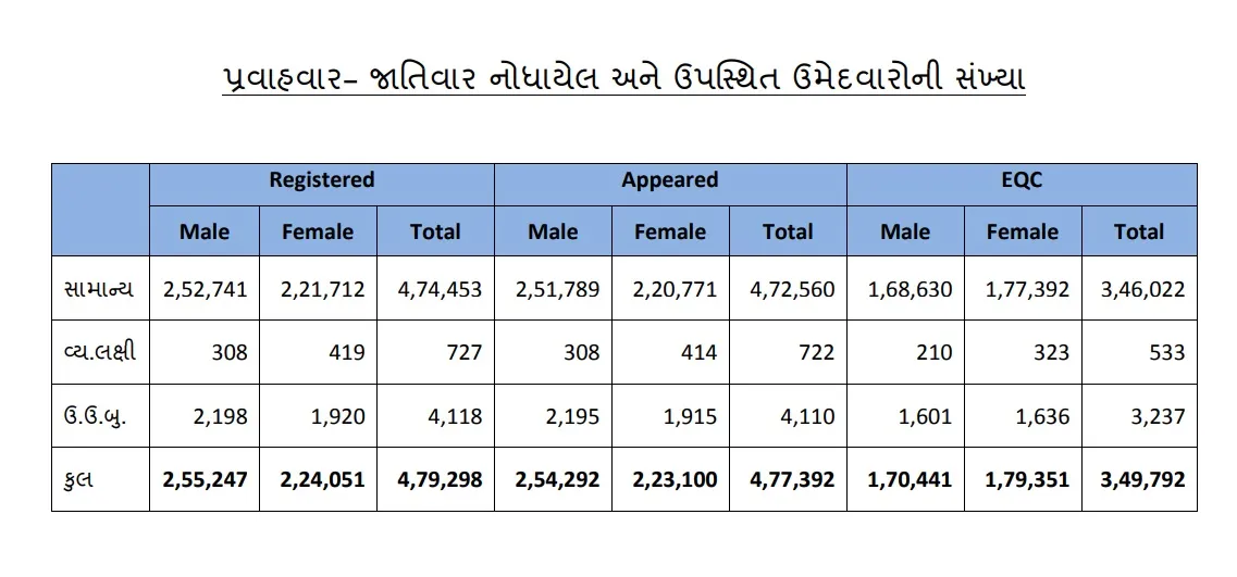 - - ઉપસ્થિત નિયમિત ઉમેદવારોની સંખ્યા - 4,77,392
