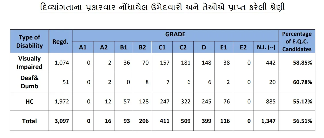 GSEB 12th Result Live : દિવ્યાંગતાના પ્રકારવાર નોંધાયેલા ઉમેદાવોર અને પ્રાપ્ત કરેલી શ્રેણી