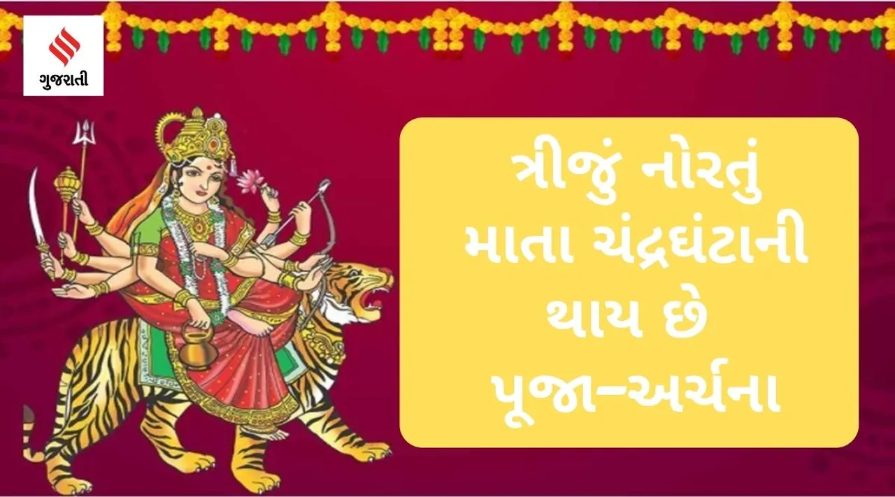 Navratri 2022: નવરાત્રીનો રંગ ધીમે ધીમે ચડતો જાય છે ત્યારે નવરાત્રીના ત્રીજા દિવસે માતા ચંદ્રઘંટાની પૂજા અર્ચના (chandraghanta puja) કરવામાં આવે છે. ચંદ્રઘંટાનો અર્થ છે જેના માથા પર અર્ધ ચંદ્ર ઘંટાના રૂપથી શોભિત છે. શાસ્ત્રોના અનુસાર આ ચંદ્રમા શીતળતા અને શુભ પ્રકાશનું પ્રતિક માનવામાં આવે છે. આ જ કારણે માતા દુર્ગાના ત્રીજા સ્વરૂપને ચંદ્રઘંટા કહેવામાં આવે છે.