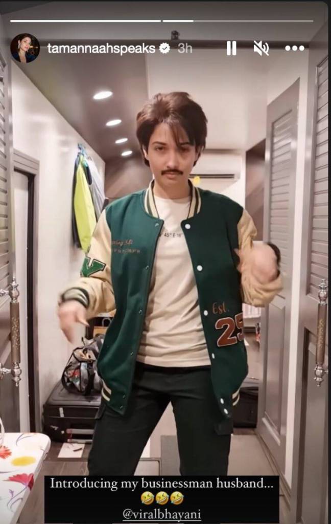 ખરેખર, તમન્નાએ તેના ઇન્સ્ટાગ્રામ એકાઉન્ટ પર બે સ્ટોરી શેર કરી છે. જેમાં એક્ટ્રેસે ફની અંદાજમાં તમામ અફવાઓ પર પૂર્ણવિરામ મૂકી દીધું છે. એક વીડિયોમાં અભિનેત્રી સાડીમાં જોવા મળી રહી છે. જ્યારે બીજા વીડિયોમાં તે મૂછો રાખતી જોવા મળે છે. આ સાથે તેણે કેપ્શનમાં લખ્યું છે કે, આ તેના બિઝસમેન પતિ છે. આ ઉપરાંત અભિનેત્રી હેશટેગમાં લખ્યું છે કે, દરેક મારી જીંદગીની સ્ક્રિપ્ટ લખી રહ્યા છે.