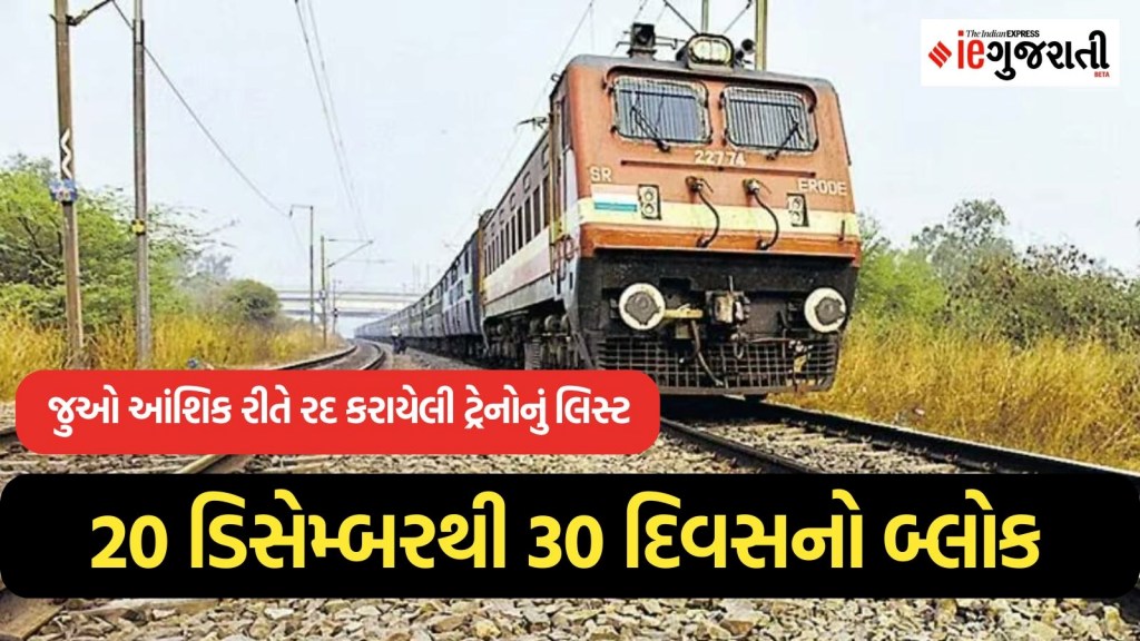 પશ્ચિમ રેલ્વેએ રેલ મુસાફરો માટે એક મહત્વપૂર્ણ સૂચના જારી કરીને જણાવ્યું છે કે અમદાવાદ રેલ્વે ડિવિઝનમાંથી દોડતી અને પસાર થતી કેટલીક ટ્રેનો આગામી દિવસોમાં નોન-ઇન્ટરલોકિંગ કામને કારણે પ્રભાવિત થશે. એક વિભાગીય રેલ્વે પ્રવક્તાએ બુધવારે જણાવ્યું હતું કે પશ્ચિમ રેલ્વે કાંદિવલી અને બોરીવલી સ્ટેશનો વચ્ચે છઠ્ઠી લાઇન કમિશનિંગ સંબંધિત નોન-ઇન્ટરલોકિંગ કાર્ય માટે 20 ડિસેમ્બરથી 30 દિવસનો બ્લોક લાદશે. આના કારણે અમદાવાદ ડિવિઝનમાંથી દોડતી અને પસાર થતી કેટલીક ટ્રેનો પ્રભાવિત થશે. આની વિગતો નીચે મુજબ છે: