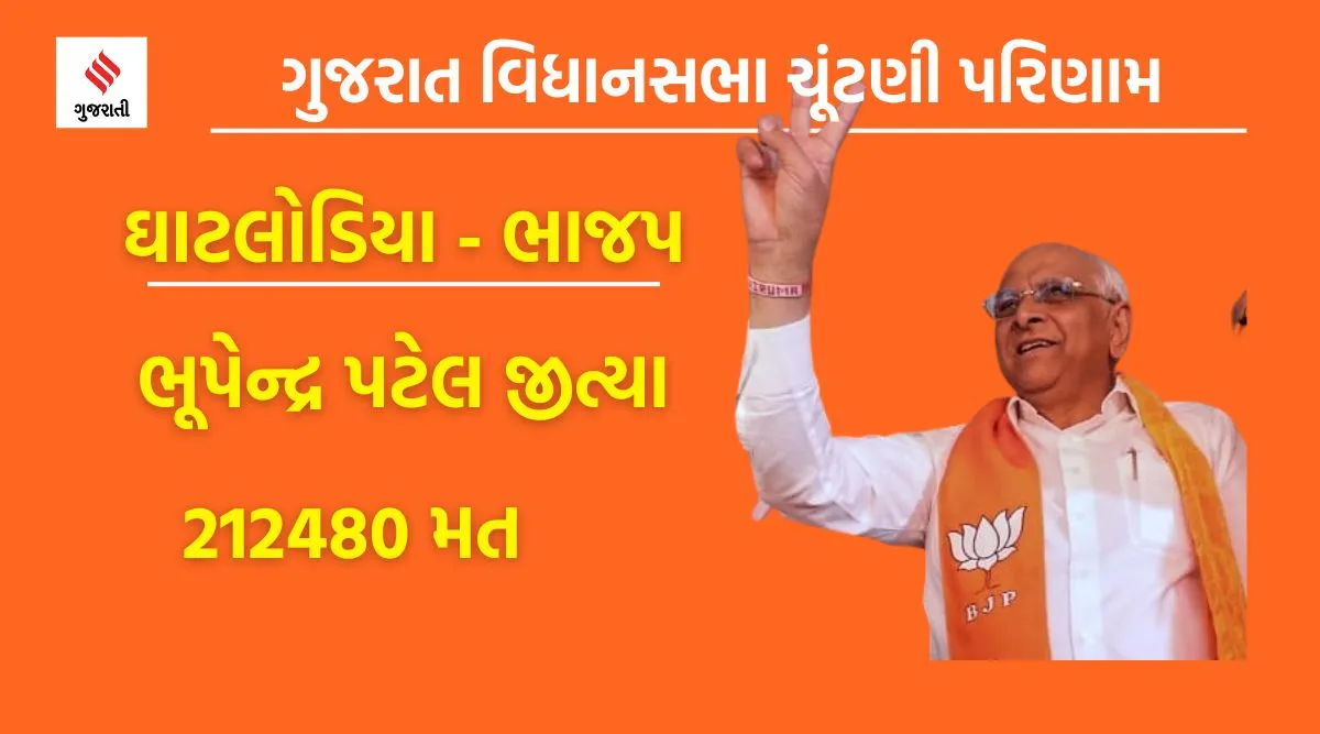 ગુજરાતના મુખ્યમંત્રી ભૂપેન્દ્ર પટેલે ઐતિહાસિક મતો સાથે જીત નોંધાવી છે. સીએમ પટેલ ઘાટલોડિયાથી ભાજપ તરફથી ચૂંટણી લડી હતી.