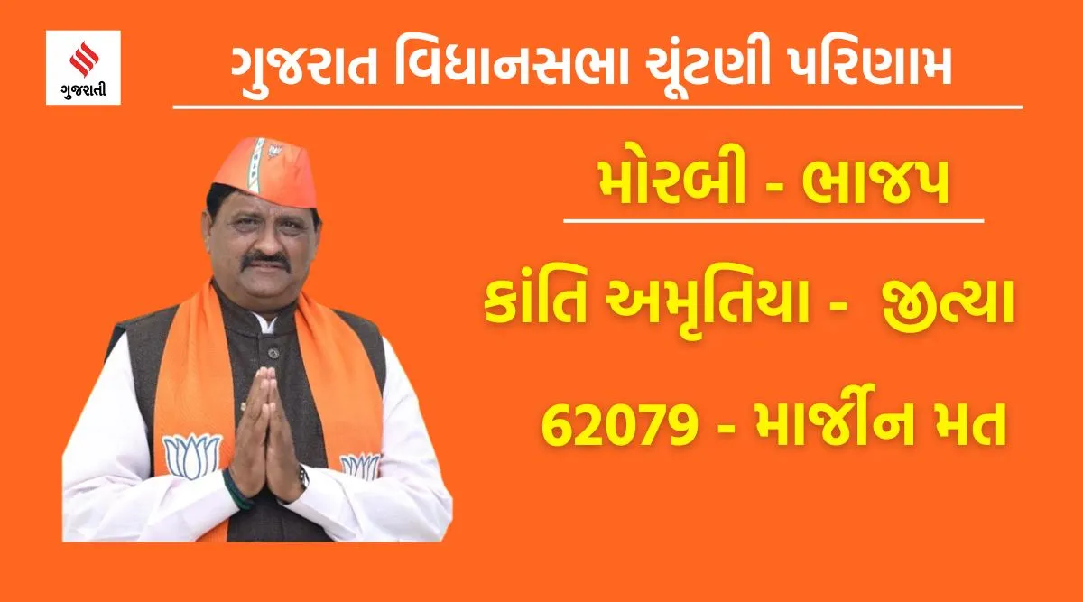 ગુજરાતમાં મોરબી પૂલ દુર્ઘટના બાદ ભાજપે મેદાનમાં ઉતારેલા કાંતિ અમૃતિયાએ જીત નોંધાવી છે. કાંતિ અમૃતિયાએ 62,079 માર્જીન મતથી જીત મેળવી છે.
