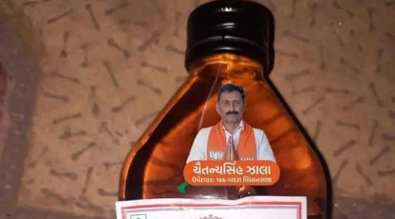 Gujarat Election: ગુજરાત વિધાનસભાની ચૂંટણીમાં મતદાન પહેલા સોશિયલ મીડિયા પર બે તસવીરો વાયરલ થઈ રહી છે, જેમાં એક બીજેપી નેતાની તસવીર દારૂની બોટલ પર જોવા મળી રહી છે. આ તસવીરો આમ આદમી પાર્ટીના નેતા નરેશ બાલ્યાએ શેર કરી છે, જેમણે આરોપ લગાવ્યો છે કે, દિલ્હીમાં દારૂની દુકાનો ગણાવનારાઓ ગુજરાતમાં દારૂનું વિતરણ કરે છે. AAP નેતાના આ આરોપ પર ઘણા લોકો પોતાની પ્રતિક્રિયા આપી રહ્યા છે.