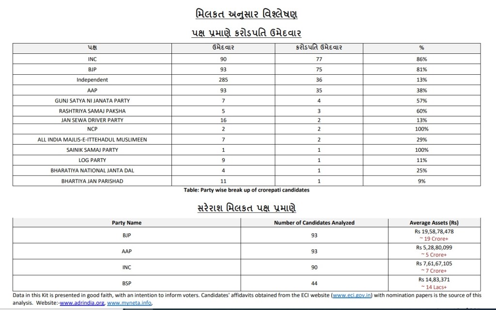 ભાજપ કરતા કોંગ્રેસમાં કરોડપતિ ઉમેદવારો વધારે