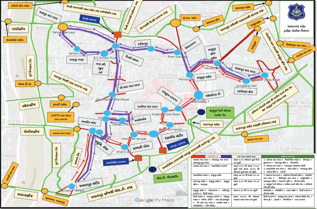 અમદાવાદ શહેર ટ્રાફિક પોલીસ દ્વારા જાહેર કરેલો રથયાત્રા દિવસનો રૂટનો નકશો