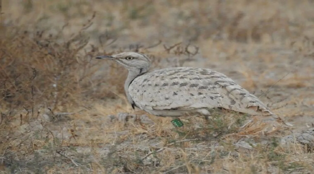 અકબર અને તેના મિત્રો બસ્ટર્ડનો ફોટોગ્રાફ કરી શક્યા હતા, જેના ડાબા પગમાં 3824 નંબરની ટેગ હતુ. (ફોટો ક્રેડિટ - અકબર અવલાની)