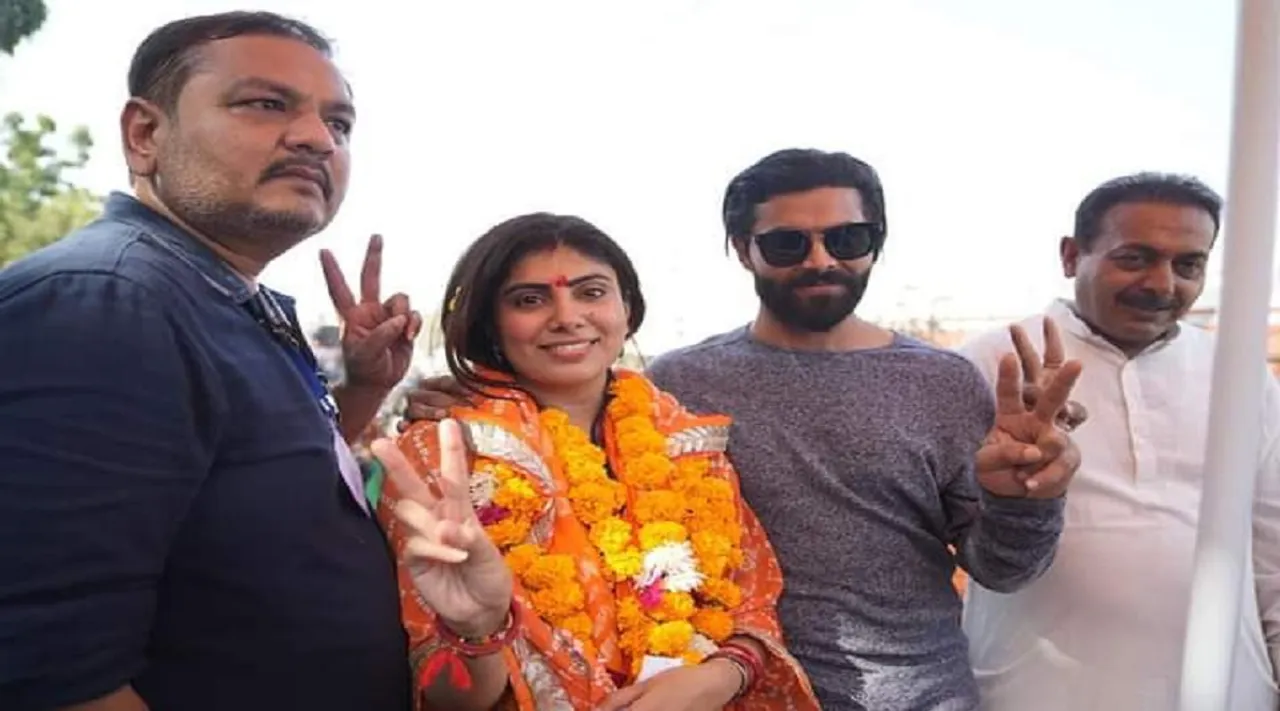 રીવાબા જાડેજા કરણી સેનાની મહિલા પાંખના વડા પણ રહી ચૂક્યા છે. રીવાબા જાડેજા 2019માં લોકસભા ચૂંટણી પહેલા ઔપચારિક રીતે ભાજપમાં જોડાયા હતા. જીત બાદ રીવાબા જાડેજાની ANI સાથેની વાતચીતનો તમે નીચેનો વિડિયો પણ જોઈ શકો છો.