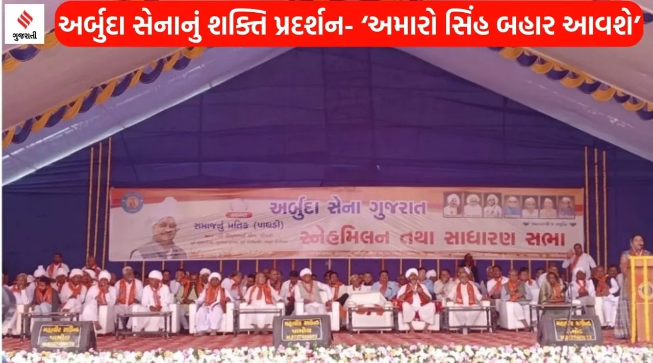 ગુજરાતમાં વિધાનસભાની ચૂંટણીનો માહોલ ધીમે ધીમે જામી રહ્યો છે અને દરેક સમાજ પોતાના રાજકીય ઉમેદવારને ટિકિટ મળે તેવી માંગણી કરી રહ્યુ છે. જો કે હાલ ઉત્તર ગુજરાતનો ચૌધરી સમાજ ભાજપ સરકારથી નાજર છે અને આજે માણસા તાલુકાના ચરાડા ગામ ખાતે યોજાયેલા ચૌધરી સમાજના સ્નેહ મિલન સમારોહમાં અર્બુદા સેનાએ શક્તિ પ્રદર્શન કર્યુ હતુ, જેમાં મોટી સંખ્યામાં લોકો હાજર રહ્યા હતા તો સમાજના આગેવાનોએ સમાજનો સિંહ બહાર આવશે અને જે ગર્જન કરશે તેના આધારે નિર્ણય કરીશુ તેવો હૂંકાર ભર્યો હતો. આ કાર્યક્રમમાં સૌનું ધ્યાન મંચ ઉપર વચ્ચે મુકાયેલી ખુરશી અને પાઘડી પર હતું. આ પાઘડી એ ચૌધરી સમાજના નેતા વિપુલ ચૌધરીની હાજરીનું પ્રતિક છે.