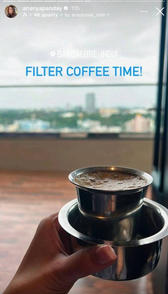 કોફીને તે સ્ટેનલેસ સ્ટીલ ટમ્બલર અને દાવરાહ (તળિયે વાટકી જેવા કન્ટેનર) નો ઉપયોગ કરીને ફેણ બનાવવા અને પછી રેડવામાં આવે છે. તે જ અહીં યાદ કરાવે છે બી-ટાઉન સેલેબ અનન્યા પાંડે જે બેંગલુરુમાં તેની ફિલ્ટર કોફીનો આનંદ માણતી જોવા મળી હતી.