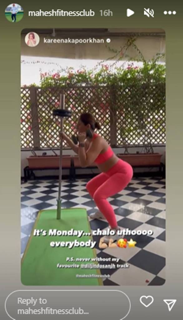 અગાઉ, તેના યોગ ટ્રેનર અંશુકા પરવાણીએ પણ અમને તેની પ્રેક્ટિસની રીલ શેયર કરી હતી. “@kareenakapoorkhan અને @diljitdosanjh સાથે બર્ન કેલરી ” આવું તેણ એક રીલ સાથે લખ્યું જેમાં કરીના દોસાંજના બોર્ન ટુ શાઇન નંબર સાથે વર્કઆઉટ કરતી દેખાતી હતી.