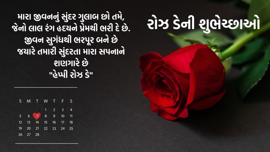 Rose Day 2024 Wishes: 7મી ફેબ્રુઆરી, એટલે કે વેલેન્ટાઈન વીક (Valentine Week) નો પ્રથમ દિવસ. 7 ફેબ્રઆરીનો આ ખાસ દિવસ રોઝ ડે (Rose Day) તરીકે ઉજવાય છે. આ દિવસથી જ પ્રેમીપંખીડાઓ પોતાના પાર્ટનરને ગિફ્ટ આપવી, પ્રેમનો એકરાર કરવાની શરુઆત કરતા હોય છે. રોઝ ડે પર પાર્ટનરને ગુલાબ આપવામાં આવે છે. ગુલાબ પણ વિવિધ રંગોના હોય છે, અને દરેક રંગના ગુલાબનો અલગ અર્થ હોય છે. પ્રેમનો એકરાર કરવા માટે મોટાભાગે લાલ ગુલાબનો ઉપયોગ કરવામાં આવે છે. જો તમે પણ પોતાના પ્રેમીને રોઝ ડેની શુભેચ્છાઓ પાઠવવા માંગો છો તો અમે અહીં તમારા માટે આ ખાસ દિવસને લગતા ખાસ મેસેજ અને વિશિઝ આપી છે,