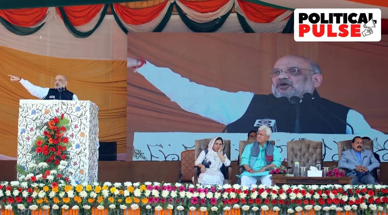 (બારામુલા)માં બુધવારે કેન્દ્રીય ગૃહમંત્રી અમિત શાહે (Amit Shah) રેલીને સંબોધિત કરી (Express photo by Shuaib Masoodi)
