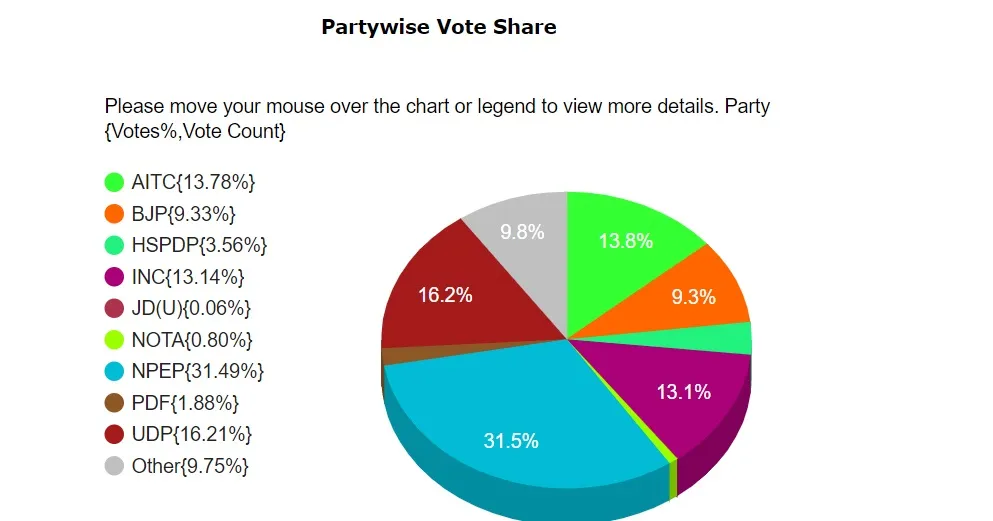 મેઘાલયમાં પાર્ટીના વોટ શેર