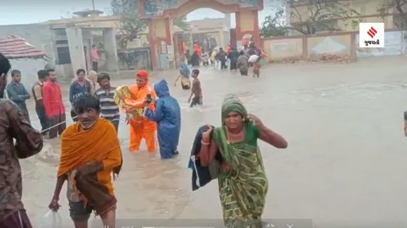 NDRFએ રૂપેન બાંદર સરકારી પ્રાથમિક શાળામાંથી 27 મહિલાઓ અને 15 બાળકો તેમજ ત્રણ નર્સિંગ સ્ટાફ સભ્યો સહિત 127 લોકોને સુરક્ષિત બહાર કાઢ્યા હતા. અતિવૃષ્ટિને કારણે આ લોકોને જ્યાં આશ્રય આપવામાં આવ્યો આવ્યો હતો તે વિસ્તાર અને શાળા પાણીમાં ગરકાવ થઈ જતાં તેમને દેવભૂમિ દ્વારકા જિલ્લાની NDH શાળામાં સ્થળાંતરિત કરવામાં આવ્યા છે.(Express photo)