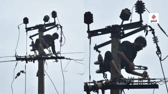 વાવાઝોડામાં મોટા પ્રમાણમાં વીજ લાઇન અને વીજળીના થાંભલાઓ ઉખડી ગયા છે. ચક્રવાત શાંત પડતા વીજ વિભાગ દ્વારા પાવરલાઇનના રિસ્ટ્રોરેશનની કામગીરી હાથ ધરવામાં આવી છે. (Express photo)