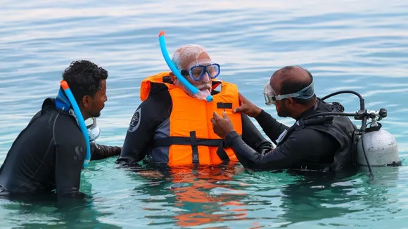 વડાપ્રધાન નરેન્દ્ર મોદી લક્ષદ્વીપની બે દિવસની મુલાકાતે ગયા હતા. તેમણે લક્ષદ્વીપના દરિયામાં ડુબકી લગાવી અને સમુદ્રની અંદરની દુનિયાનો નજારો માણ્યો હતો. (Photo- @narendramodi)