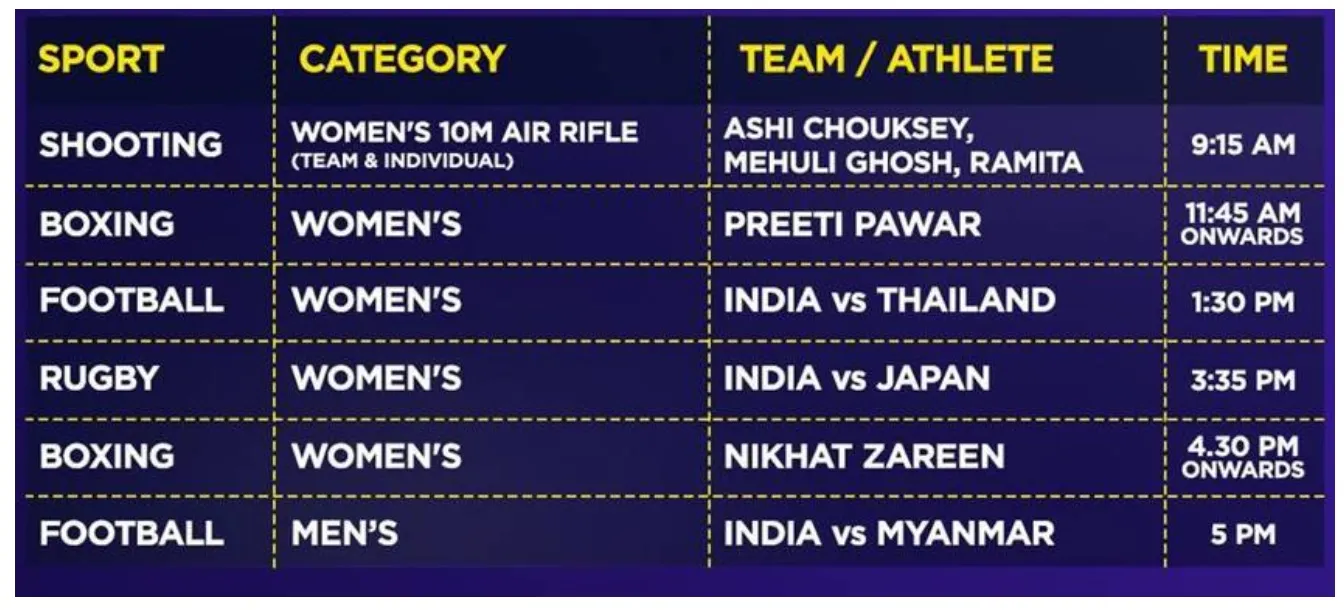 એશિયન ગેમ્સ 2023 લાઈવ: ભારતીય ખેલાડીઓ ઘણા મુકાબલામાં લડશે.