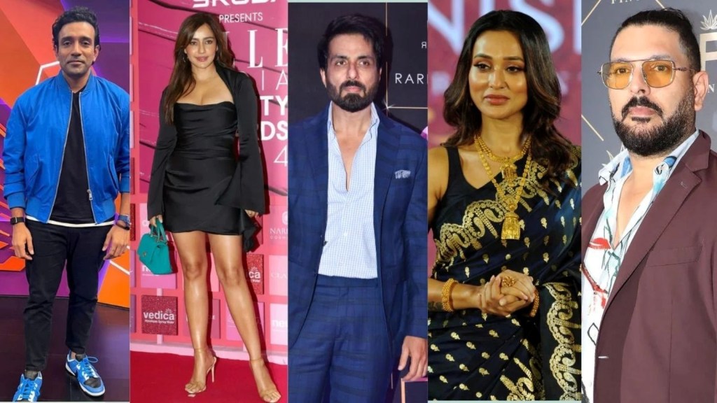 રોબિન ઉથપ્પા, નેહા શર્મા, સોનુ સૂદ, મિમી ચક્રવર્તી અને યુવરાજ સિંહ. (ફાઇલ ફોટો)