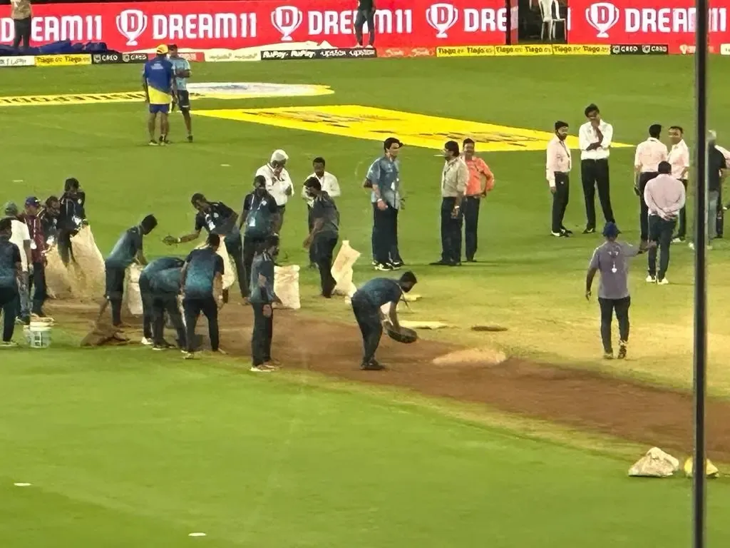 પિચને તૈયાર કરતા ગ્રાઉન્ડ સ્ટાફ