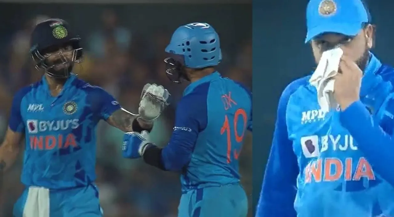 INDIA Vs SOUTH AFRICA, 2ND T20I: દક્ષિણ આફ્રિકા સામેની બીજી ટી-20 મેચમાં સમર્પણ અને ત્યાગના અનોખા ઉદાહરણ જોવા મળ્યા હતા. ભારતીય કેપ્ટન રોહિત શર્માના નાકમાં લોહી આવ્યા છતા તે મેદાનમાં ઉભો રહ્યો હતો અને ખેલાડીઓને નિર્દેશ આપતો રહ્યો હતો. જ્યારે ભારતીય ઇનિંગ્સની અંતિમ ઓવરમાં વિરાટ કોહલી અને દિનેશ કાર્તિક વચ્ચે ખાસ ક્ષણ જોવા મળી હતી. બીજી ટી-20 મેચમાં ભારતે દક્ષિણ આફ્રિકા સામે 16 રને વિજય મેળવી 3 મેચની શ્રેણીમાં 2-0થી લીડ મેળવી લીધી છે.