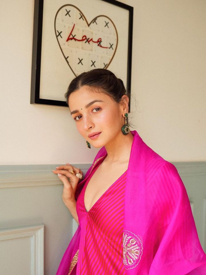 Alia Bhatt : આલિયા ભટ્ટનો આ લુક વેડિંગ ફંક્શન માટે છે પરફેક્ટ આલિયા ભટ્ટ બૉલીવુડની જાણીતી અભિનેત્રી છે. અભિનેત્રી તેની એકટિંગને કારણે ફેમસ છે. તેની એકટિંગ સાથે એક્ટ્રેસ તેની ફેશન સેન્સ માટે પણ જાણીતી છે. તાજતેરમાં અભિનેત્રીએ સોશિયલ મીડિયા પર કેટલાક ફોટોસ શેર કર્યા હતા જે ચર્ચમાં રહ્યા છે. અભિનેત્રીએ વાઈટ મોતી વાળી બોર્ડરમાં બ્લેક પ્લેઇન સાડી સાડી પહેરી હતી. જેમાં અભિનેત્રીએ અલગ અલગ પોઝ આપ્યા હતા. એક્ટ્રેસએ બ્લેક સાડીમાં વાઈટ મોતી વાળી માળા અને મેચિંગ ઈયરિંગ્સ સાથે લુક કમ્પ્લીટ કર્યો છે. આલિયાએ ન્યૂડ મેકઅપ સાથે રેડ શેડ વાળી લિપસ્ટિક પસંદ કરી છે, આલિયાનો આ લુક એલિગન્ટ છે. આલિયા ભટ્ટના વર્ક ફ્રન્ટની વાત કરીયે તો અપકમિંગ ફિલ્મ ""જીગરા"" અને ""લવ એન્ડ વોર"" માં જોવા મળશે. આ પણ વાંચો: nnSara Tendulkar : સારા તેંડુલકરએ વેલેન્ટાઈન ડે આ રીતે કર્યો સેલિબ્રેટ, જુઓ ફોટા