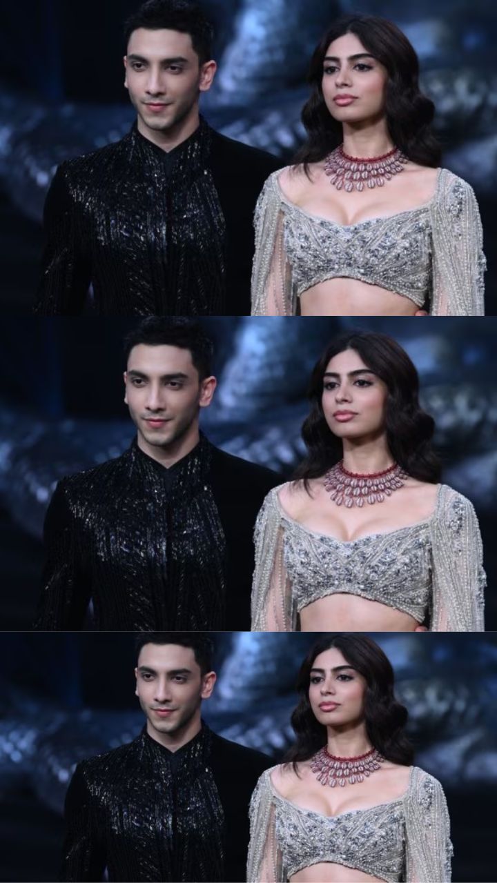 રૈના અને કપૂર ગઈકાલે રાત્રે ડિઝાઈનર ગૌરવ ગુપ્તાના ઈન્ડિયા કોચર વીકમાં તેના લેટેસ્ટ કલેશન “અરુણોદય” માટે શોસ્ટોપર્સ બન્યા હતા. જેમાં ખુશીએ ઑફ-શોલ્ડર બ્લાઉઝ, કેપ-સ્ટાઇલવાળી સ્લીવ્ઝ અને મરમેઇડ સ્કર્ટ સાથે સિલ્વર લહેંગામાં સ્ટેજ પર હાજરી આપી હતી.