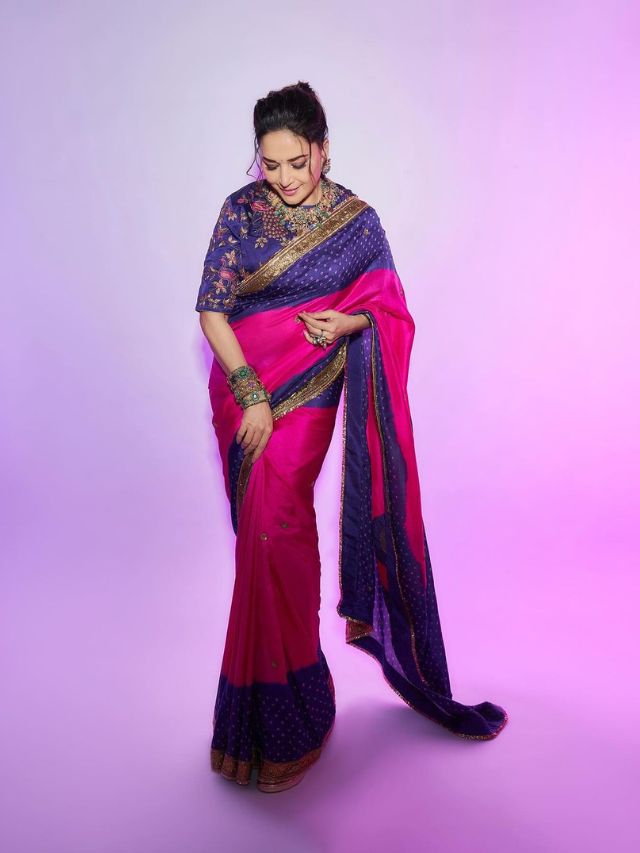 Madhuri Dixit Photos : માધુરી દીક્ષિતના ટ્રેડિશલ લુક લગ્ન પ્રસંગ માટે છે બેસ્ટ માધુરી દીક્ષિત બૉલીવુડની "ધક ધક ગર્લ" તરીકે જાણીતી છે. આ અભિનેત્રીએ ઘણી હિટ ફિલ્મો આપી છે. ધક ધક ગર્લ ન માત્ર તેની એકટિંગ માટે પરંતુ તેની સ્ટાઇલ અને ફેશનને લઈને હંમેશા ચર્ચામાં રહે છે. તાજતેરમાં એકટ્રેસએ સોશિયલ મીડિયા પર ટ્રેડિશનલ લુકના ફોટા શેર કર્યા હતા. જેમાં તેણે અલગ અલગ પોઝ આપ્યા હતા. માધુરીએ બાંધણીની ગોલ્ડન બોર્ડર વાળી પિન્ક અને બ્લ્યુ સાડી પર તેણે મોર પ્રિન્ટેડ એલ્બો સ્લીવ બ્લાઉઝ પસંદ કર્યો છે. અભિનેત્રીએ આ લુકમાં લાઈટ મેકઅપ સાથે પિન્ક શેડ વાળી મેટ લિપસ્ટિક અને મેચિંગ ઝવેલરી ઉપરાંત બન હેયરસ્ટાઇલ પસંદ કરી છે. માધુરીએ ઈન્ડો વેસ્ટર્ન યલો સાડી પર મીરર આર્ટવર્ક વાળી કોટી અને બ્લાઉઝ પસંદ કર્યો છે. જે ખુબજ એલિગન્ટ લાગે છે. આ લુક વેડિંગ માટે છે. માધુરી દીક્ષિતએ બૉલીવુડમાં ફિલ્મ કરિયરની શરૂઆત "અબોધ"" ફિલ્મ થી કરી હતી. માધુરી મરાઠી ફિલ્મ "પંચક" ની પ્રોડ્યુસર પણ છે, પંચક ફિલ્મ આ મહિને રિલીઝ થઇ હતી. આ પણ વાંચો: nnFighter Screening : રિતિક સબાએ આપ્યો ફાઈટર પોઝ,જુઓ ફોટા