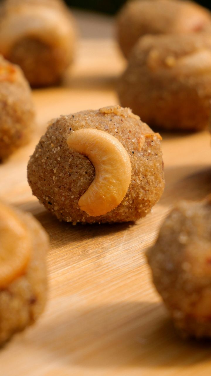 1/2 કપ બાજરીનો લોટ, 1/2 કપ બેસન (વૈકલ્પિક), 2 ચમચી ઘી, એલચી પાવડર, જાયફળ પાવડર, સમારેલા ડ્રાયફ્રૂટ્સ અને થોડા શેકેલા ખસખસ, 3/4 કપ ગોળ