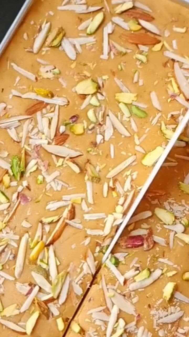 હવે આ લોટને એક મોટી ડીશમાં વ્યવસ્થિત પાથરો, અને તેના તમારી ચોઈસ મુજબ ચોરસ કટ કરી લો. અને ઉપરથી ડ્રાયફ્રટસની કતરણ એડ કરો અને સર્વ કરો.