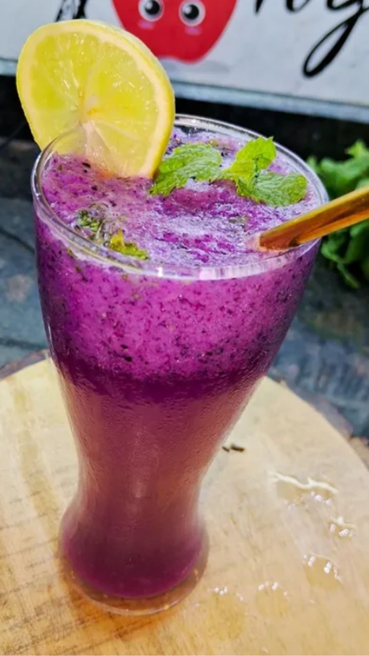 ત્યાર બાદ અડધુ લીંબુનો રસ તેમજ 25 મીલી સોડા ઉમેરો, થોડા જાંબુના પલ્પના ટૂકડા પણ ઉમેરો.