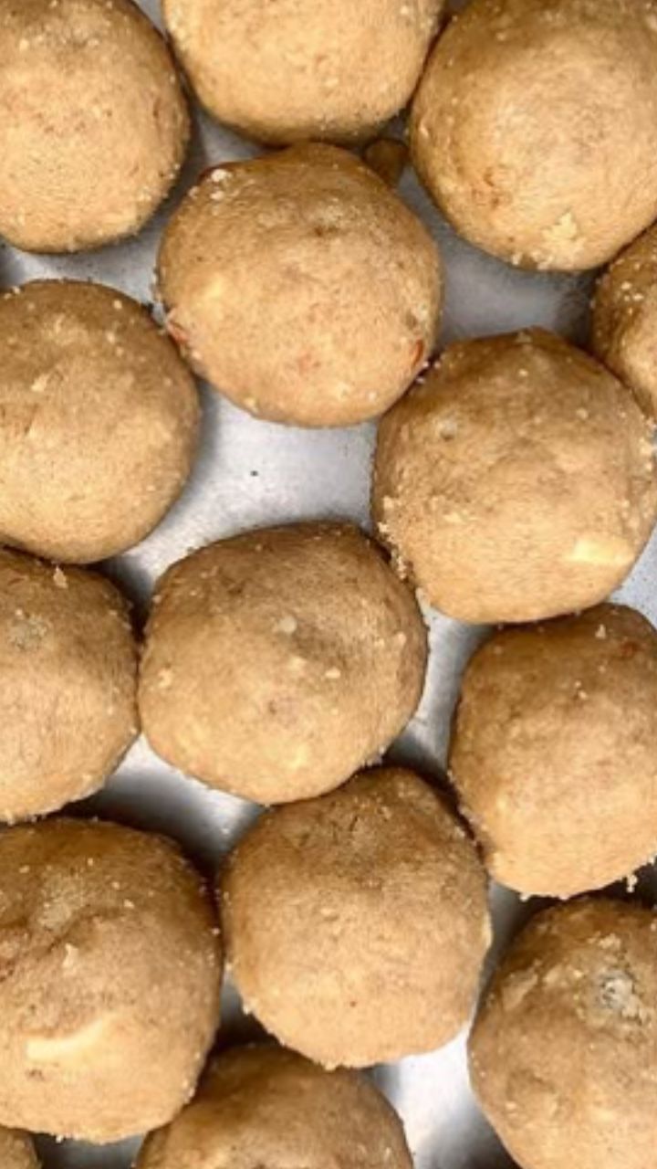 હવે નારિયેળ કાઢી લો. ગોળને મિક્સરમાં પીસી લો, હવે પેનમાં ઘી નાખો. તેમાં સમારેલા કાજુ અને કિસમિસ નાખો અને તેને શેકો, હવે એક બાઉલમાં બદામ પાવડર, ગોળ અને નારિયેળ પાવડર મિક્સ કરો.