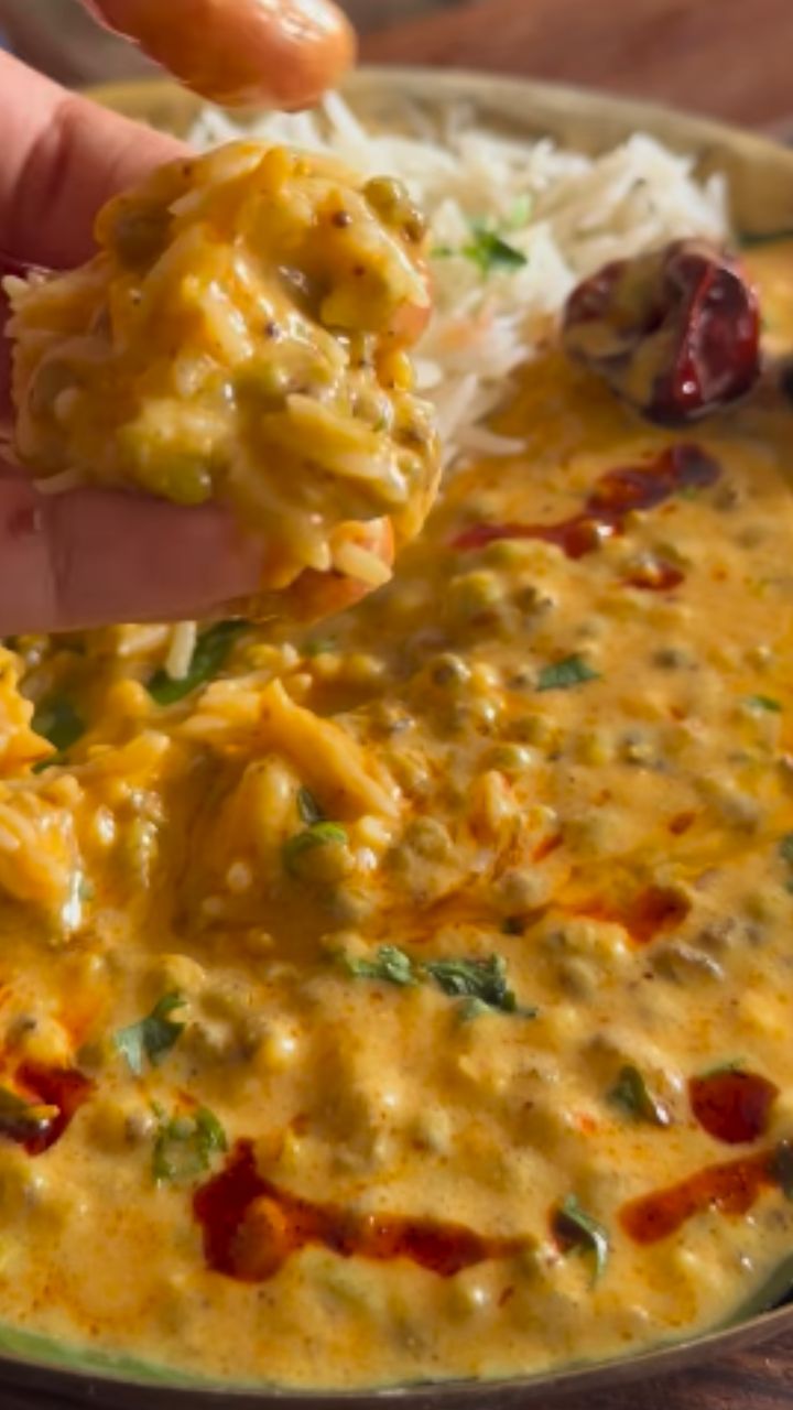 1 કપ પલાળેલા લીલા મગ, 1/2 ચમચી હળદર પાઉડર, 1/2 કપ ઘટ્ટ દહીં, 3 ચમચી ચણાનો લોટ, 3 કપ પાણી
