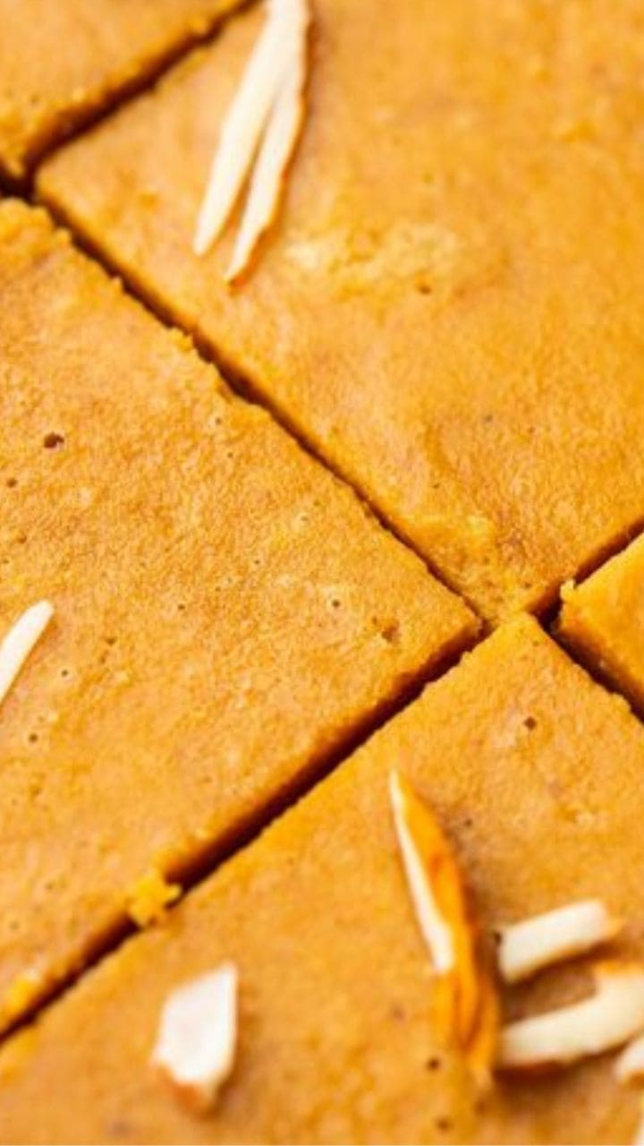 1 વાટકી ચણાનો લોટ, 2 ચમચી ઘી, 2 ચમચી ગરમ દૂધ, 1/2 કપ ઘી, 1 કપ દાણાદાર ખાંડ, 1 કપ પાણી