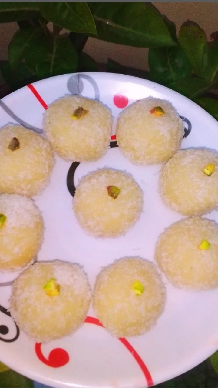 જ્યારે મિશ્રણ સંપૂર્ણપણે ઘટ્ટ થઈ જાય ત્યારે ગેસ બંધ કરો અને તેને ઠંડુ થવા દો. હવે, નરમ હાથે લાડુ બનાવો અને તેને નારિયેળની છીણથી કોટ કરો.