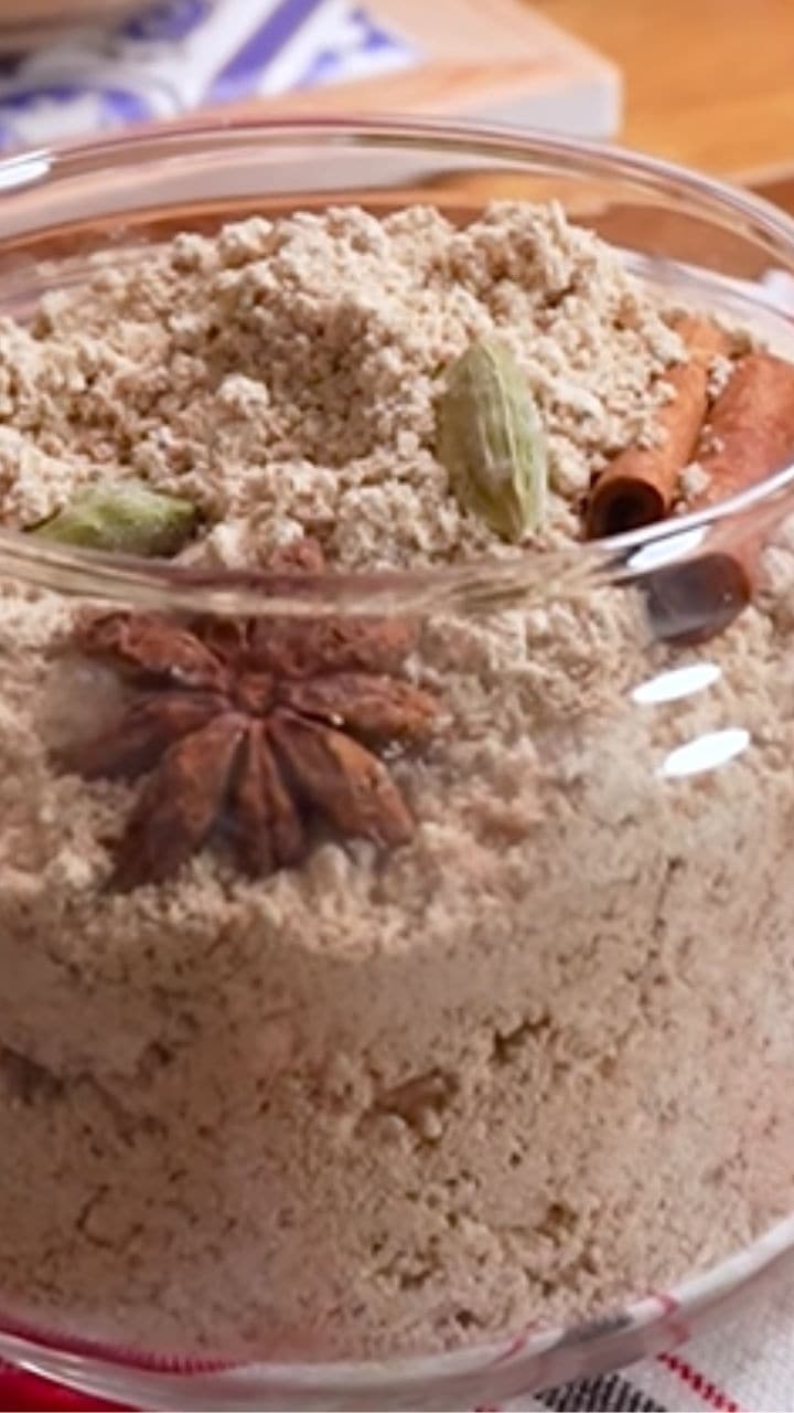 20 ગ્રામ એલચી, અડધું જાયફળ, 5 ગ્રામ મરી, 10-15 લવિંગ, 20 ગ્રામ તજ, 60 ગ્રામ સૂંઠ